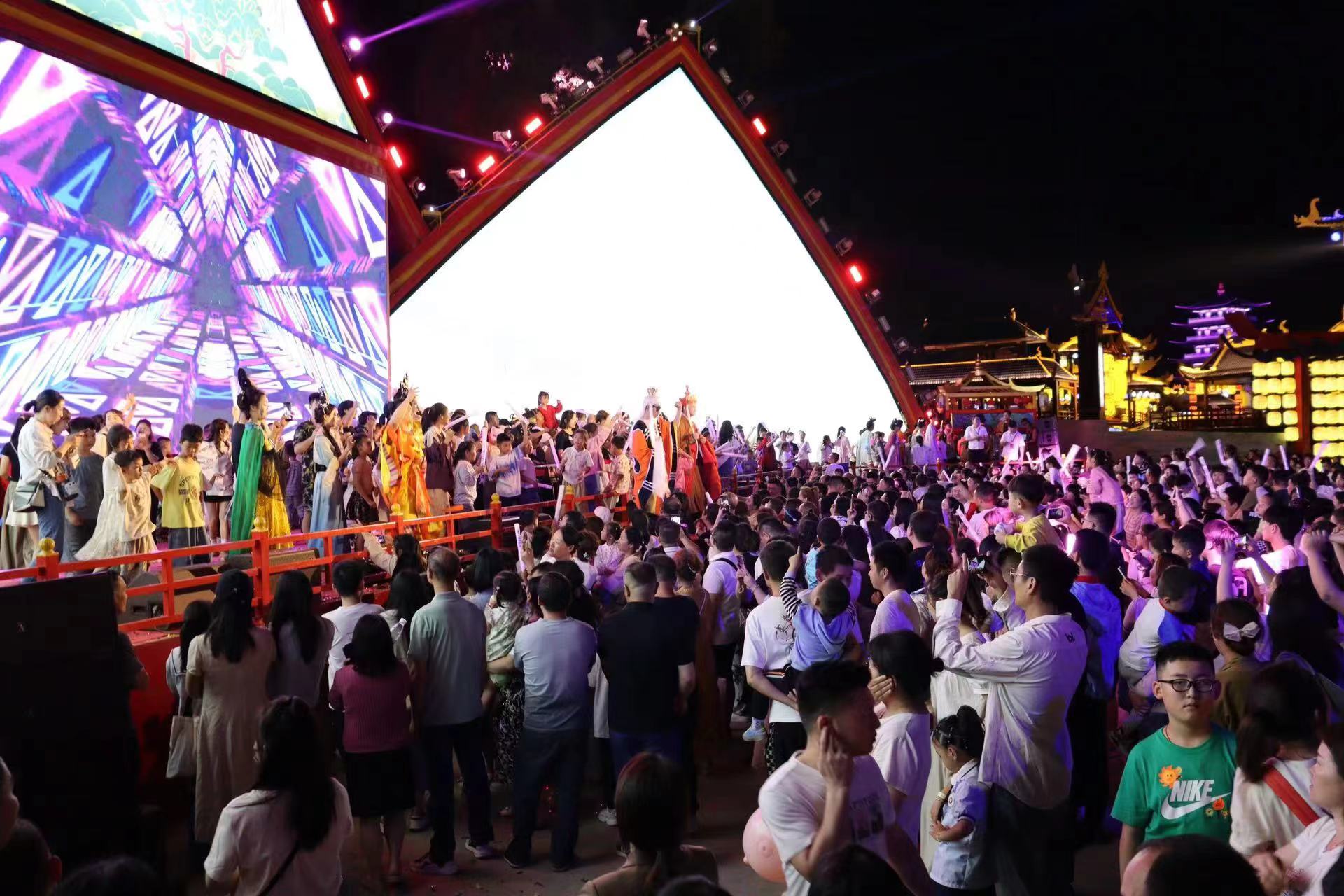嘉鱼恋江湖船歌岛景区以西游为主题,推出铁扇公主、大闹龙宫等10余个特色展演,配合非遗打铁花、火壶表演和大型音乐焰火,让游客充分感受传统文化魅力。景区连续两天3万人入园,1—4日接待游客超11万人次。