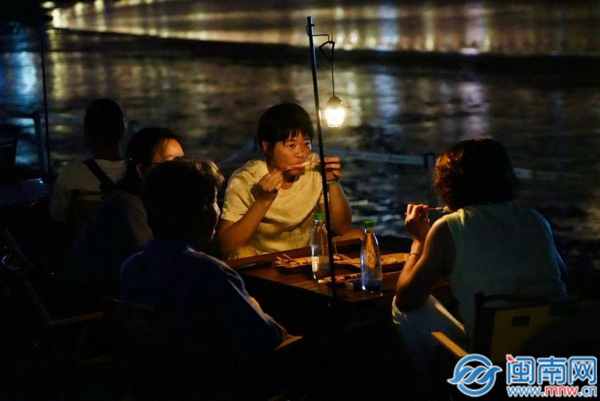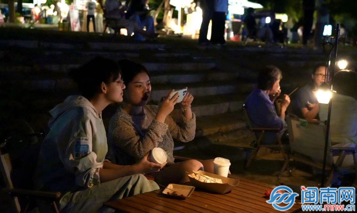来自重庆市的张女士和朋友们围坐在一起,海风轻拂,欢声笑语不断,“来到这边看看夜景,吹吹海风,真的能暂时把繁忙的工作抛之脑后。这次来泉州很放松,感觉洗去了‘班味’。”张女士笑着说道。不远处,陈先生也沉浸在这个惬意的氛围中,“我从山西大同过来旅游的,这里的夜市很有特色,既能欣赏美景,又能品尝美食,真是不虚此行。”