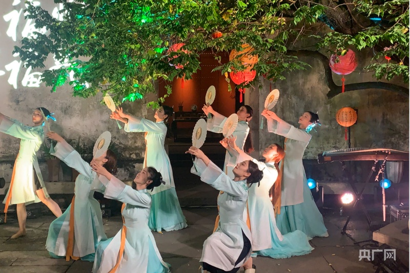 国庆假期,福州“三条簪”火热出圈,图为头戴“三条簪”的工作人员在演出(央广网记者罗晓英摄)