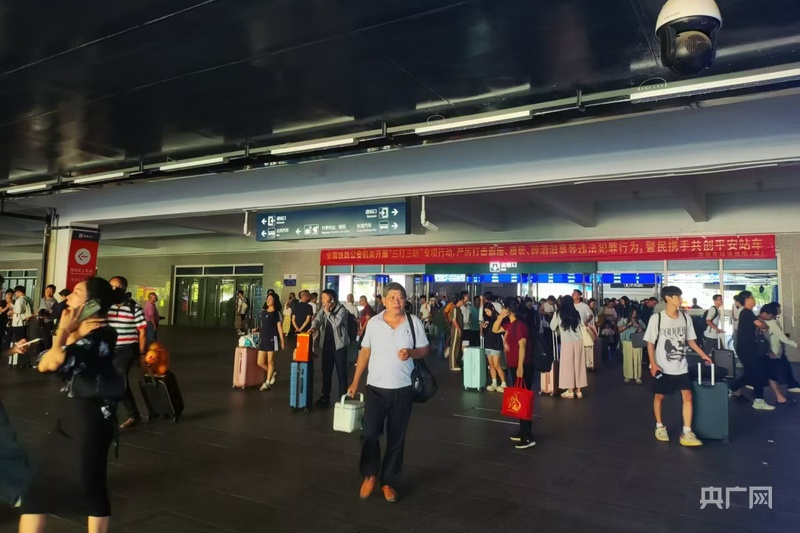 国庆假期,福建省累计发送旅客461.6万人次,图为旅客在龙岩站有序出站(央广网记者罗晓英摄)