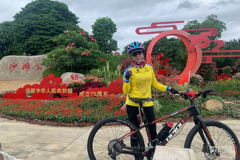 市民在国庆节日氛围景观布置点拍照打卡(央广网记者罗晓英摄)