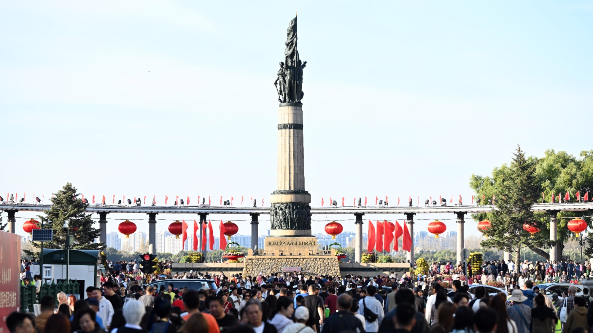 哈尔滨防洪纪念塔国庆氛围感拉满(央广网发徐旭摄)