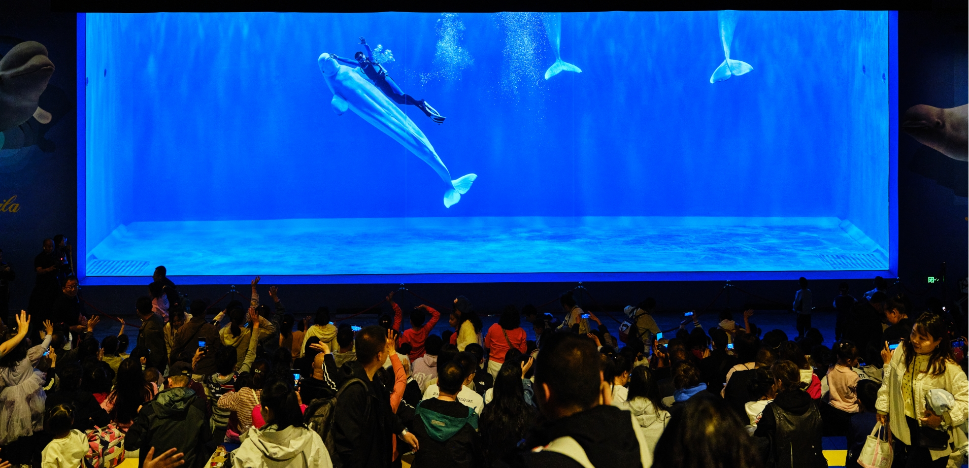 一直备受游客喜爱的哈尔滨极地公园,在国庆假期持续上演世界首创的极地白鲸水下表演和3D全息光影海豚秀等七大主题表演,截至10月7日,哈尔滨极地公园累计表演200余场,日均接待游客超万人。