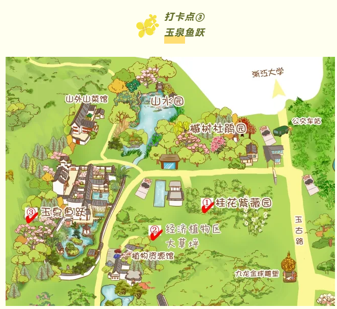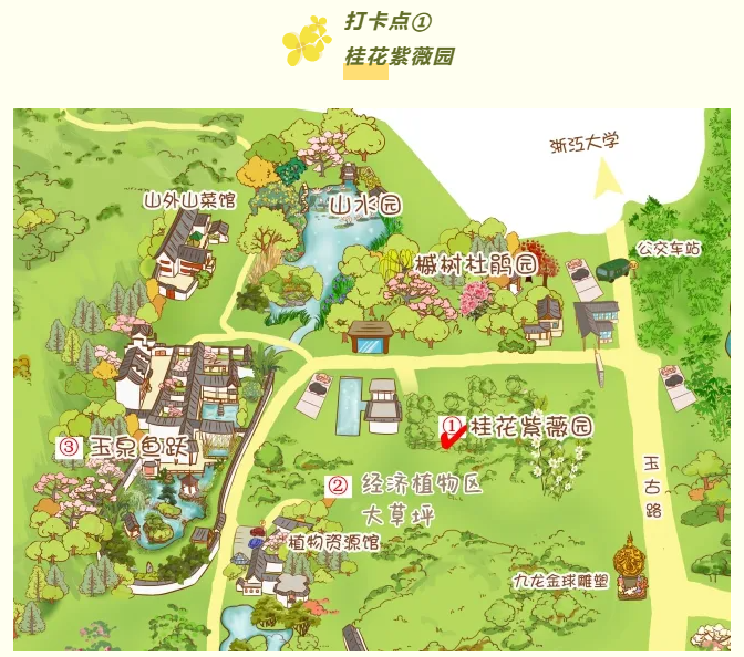 杭州植物园赏桂除了桂花紫薇园,还有玉泉鱼跃、盆栽园等观赏点。玉泉鱼跃充满浓厚江南园林韵味,玉泉里茶室可以喝茶,边上山外山餐馆方便用餐。