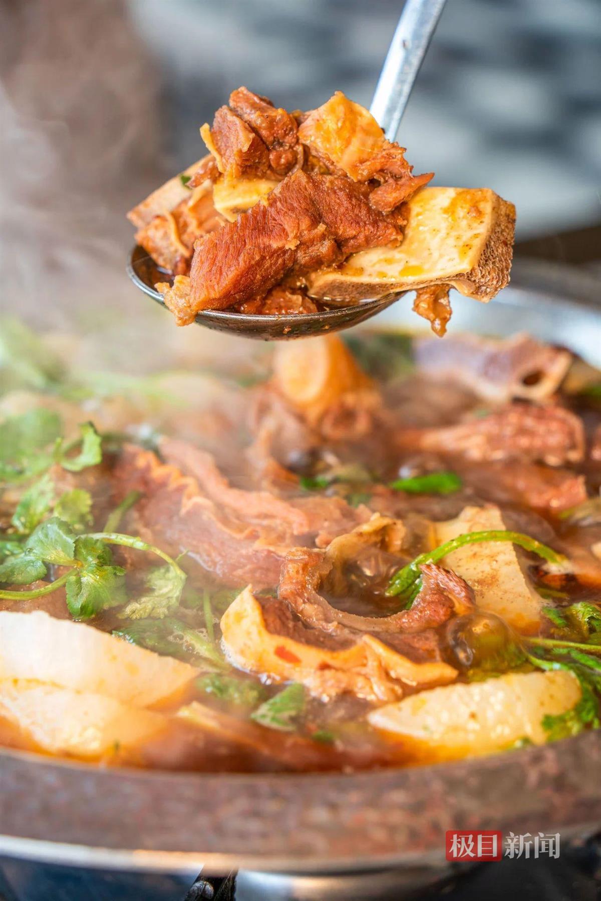 店老板朱星是一名90后,转业回乡后子承父业,创立了嘎星牛骨头。这里的牛骨头散发出诱人的卤香,肉感扎实,每一口都让人大呼过瘾。除了必点的牛骨头锅,藕汤、臭干子、春卷等也是不容错过的美味。