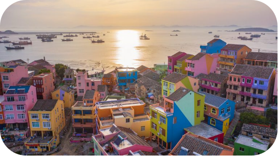 温岭石塘小箬村是温岭石塘半岛西南部的一个小渔村,由艺术家们用彩色小房子、石头和树木建构成一个童话般的世界。在这里,游客可以欣赏到传统石屋和现代艺术的完美结合,感受到独特的海岛风情和美丽的海滨风光,是最佳的日落拍摄点和观看地之一。