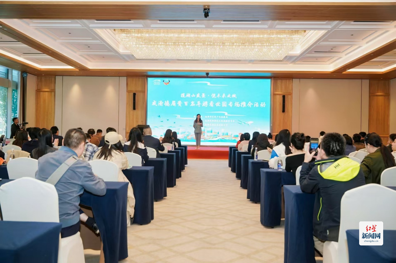 推介会上,2024成都世界园艺博览会、三岔湖、丹景台、丹景谷漂流等8个重点文旅主体,天府国际大酒店、三岔湖蕃薯藤度假酒店等9家品质酒店代表向导游朋友们展示了各具特色的文旅资源。近年来,随着文旅市场的蓬勃发展,成都东部新区的文旅市场主体日益增加,不仅拥有成都的“马尔代夫”三岔湖,“城市之眼”丹景台,是“世园会”“世运会”双主场,还上新了西部地区最大的专业赛道——天府国际赛道,成都新晋TOP1漂流胜地—丹景谷漂流,以及号称“机场后花园、林盘会客厅”的三鱼萌狮文化村。在品质住宿产品方面,拥有5000间超大体量的天府国际大酒店,住在机场里的天府云享悦享酒店,坐拥湖光山色的三岔湖环球融创洲际酒店等10余家高品质酒店。