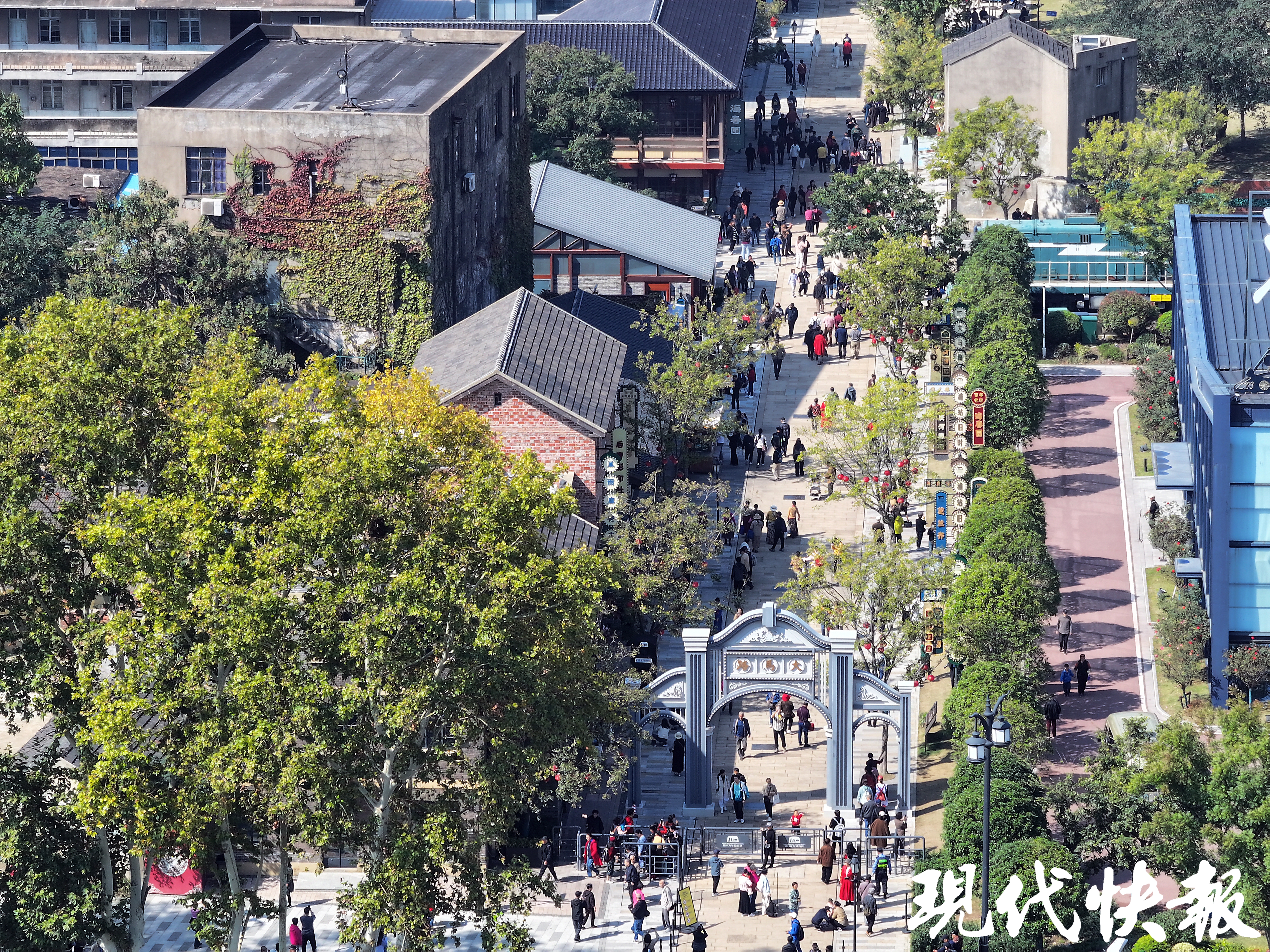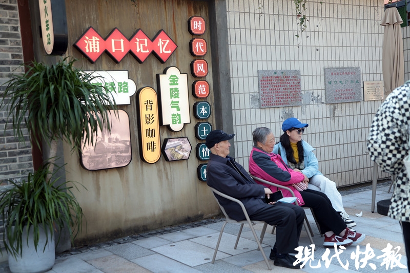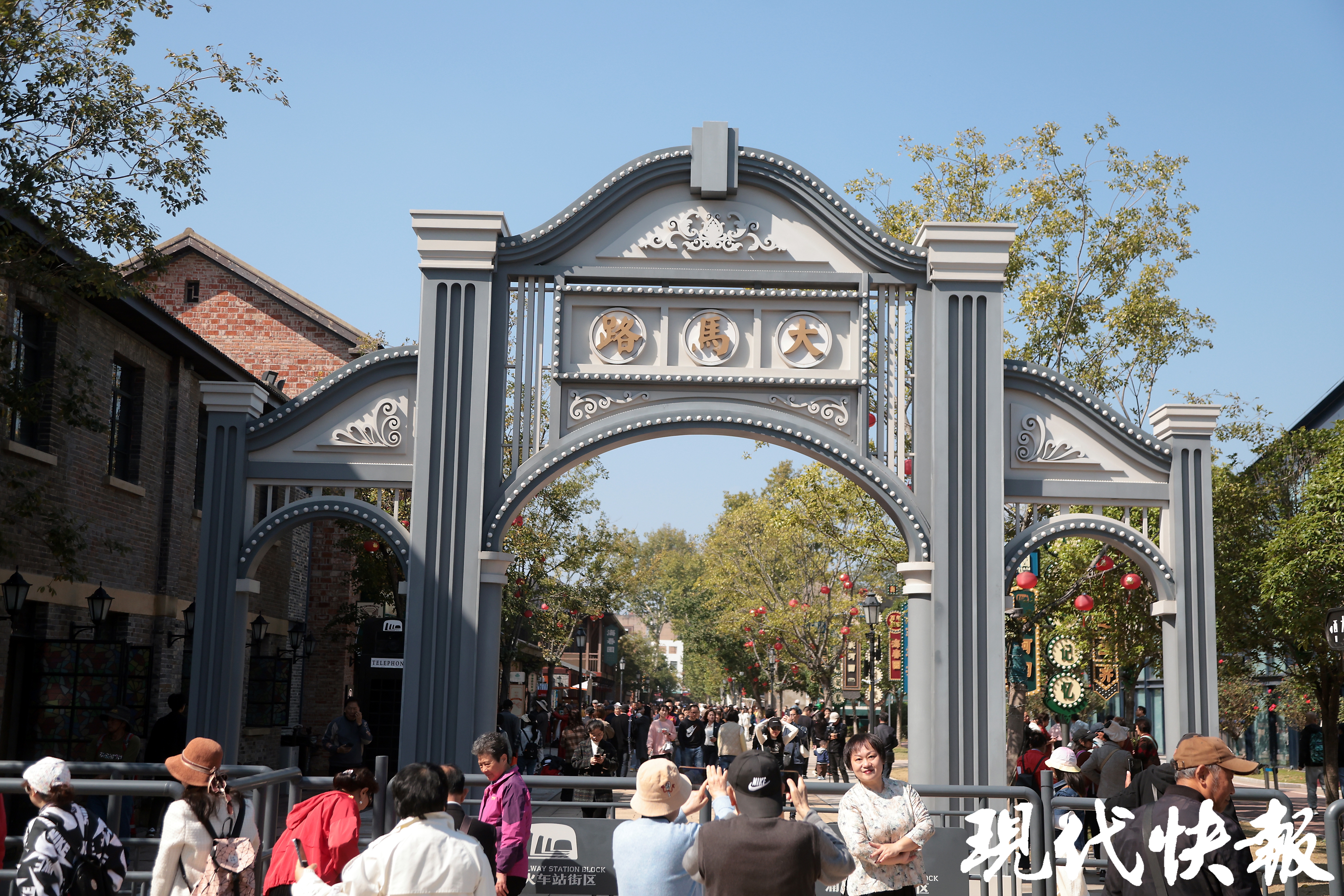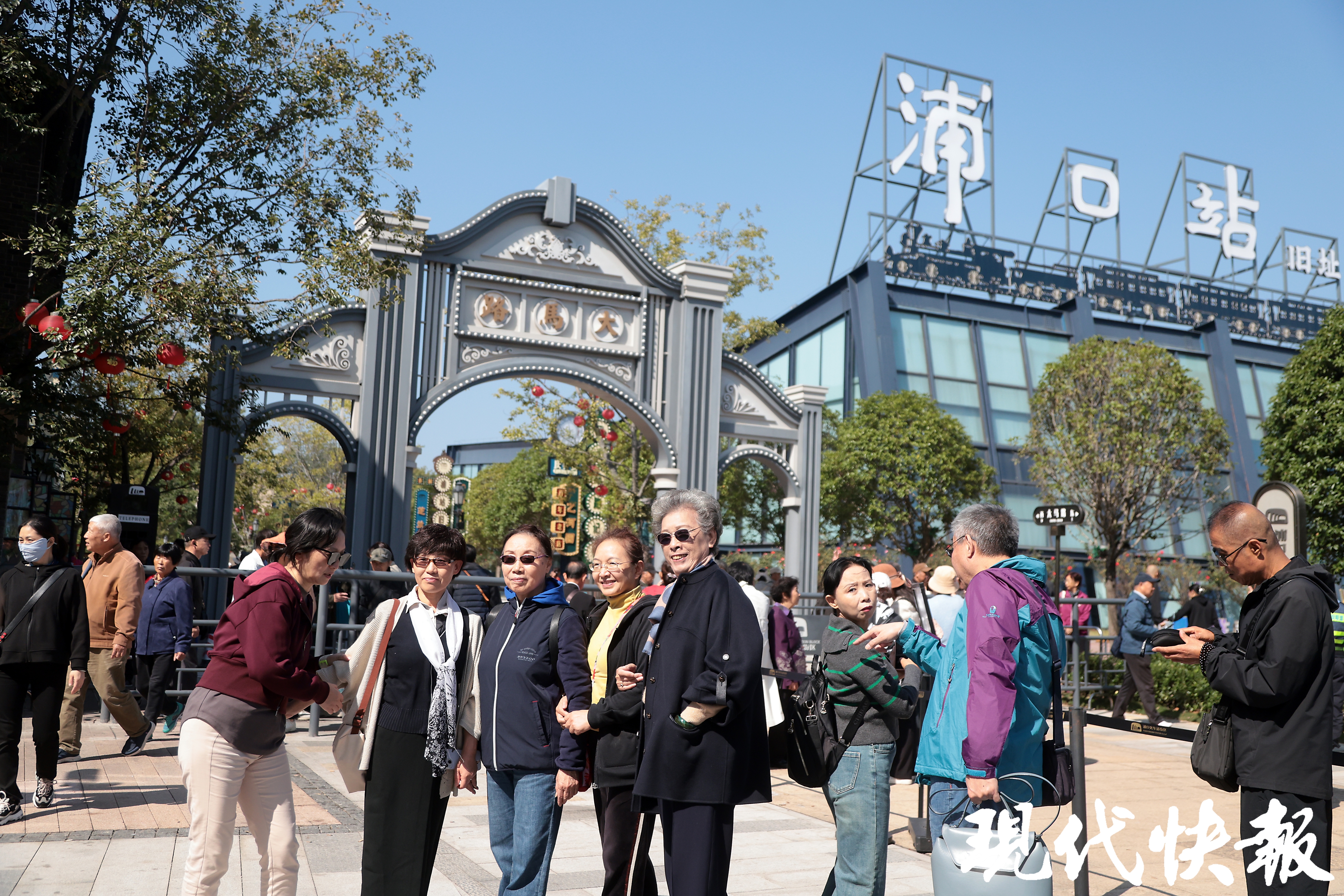 从浦口码头下了轮渡,正对面就是浦口火车站——曾经的南京北站。10月23日11点多,现代快报记者见到,车站风雨长廊和广场里满是衣着鲜亮的游客,从轮渡前往新开放街区的路上,游客们拍照留念、合影打卡,玩得不亦乐乎。