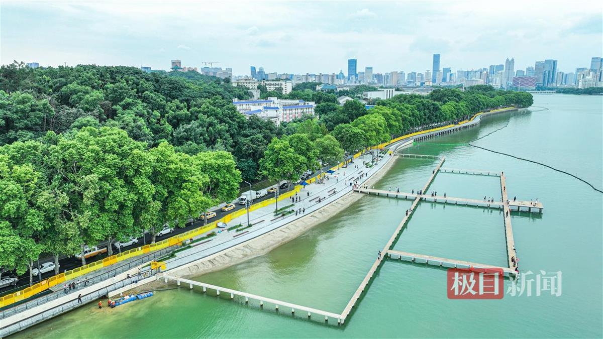 今年6月25日,东湖绿道三期工程全线贯通,与东湖绿道一、二期工程有效衔接,实现东湖绿道105公里成环结网,串联起大武汉的山、水、园、林、城,成为东湖绿道的“画圆”之作。