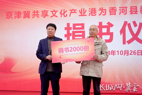 京津冀共享文化产业港向香河县教体局捐赠图书2000册。长城网·冀云客户端记者 武海笑 摄