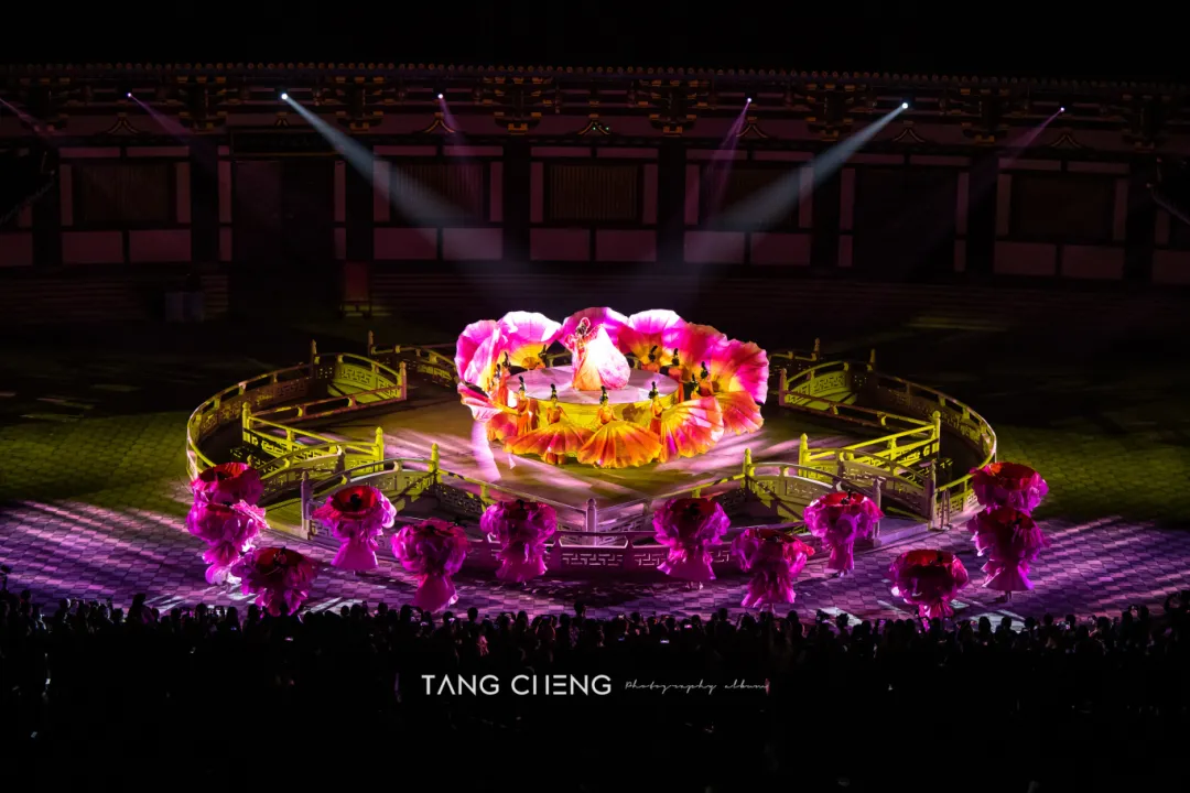 景区分为六大片区,引汉江活水入城,并通过8座桥梁与城内8条水系连接,形成“八水绕长安”的格局。漫步在唐城,电影中的悠扬古乐恍若在耳边回响。此时《妖猫传》中的痕迹尽显于此。恢宏的大殿,错落有致的庭院,还有那些雕梁画柱的建筑都尽收眼底。