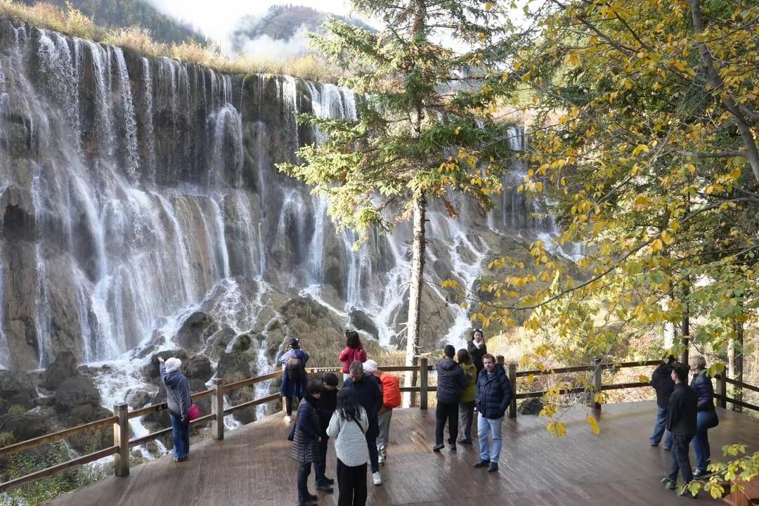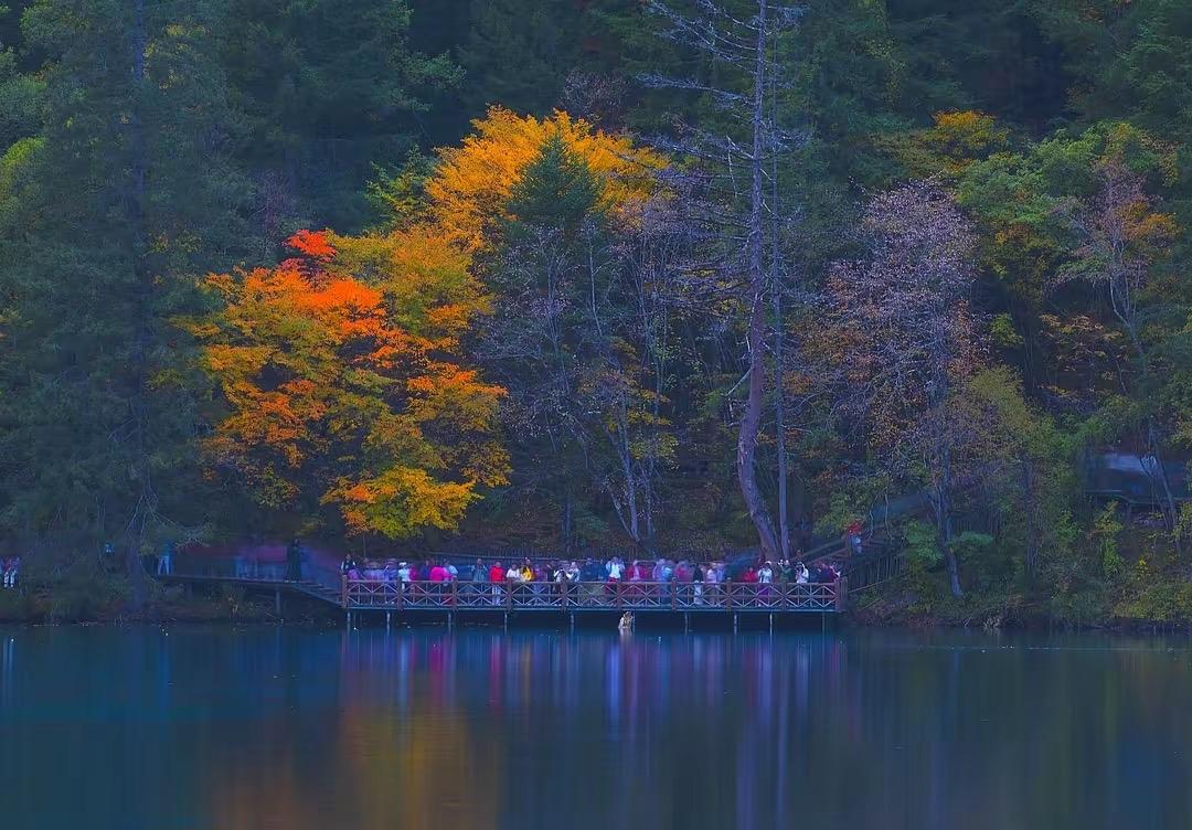 11月1日,层林尽染的九寨沟一片彩林漫漫、炫雅妩媚的景象,秋叶与飞雪、彩林与碧水交织出浓与淡、实与虚的视觉碰撞,在这场时光盛宴中,九寨沟景区旅游接待破历史纪录。截至当日14:00时,2024年景区共接待游客5117342人次,其中入境游客27.97万人次,提前2个月超2015年历史最高接待纪录509万人次,超2007年历史最高入境游客接待纪录23.9万人次,实现双突破。