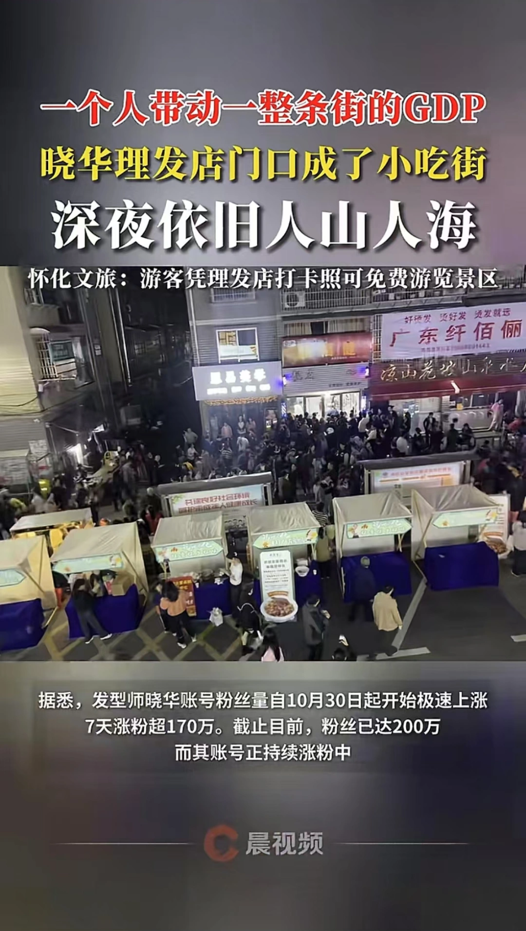 和商务局正在制定详细方案,希望能借着晓华理发师的流量,让来到怀化的全国网友品尝怀化美食体验非遗文化。网友们戏称“怀化5A级景区”“一个人带动一整条街的GDP”。