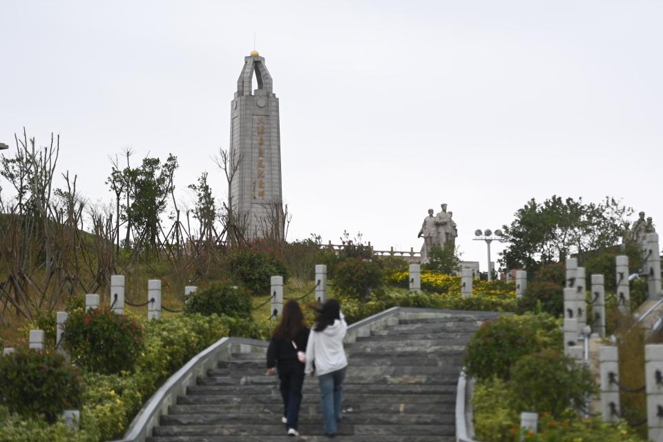 11月8日,游客走向大陈岛垦荒纪念碑及雕塑。新华社记者 黄宗治 摄