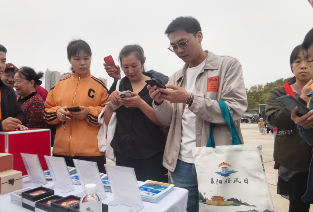 襄阳此次展出枣阳粗布、老河口木版年画、襄阳香包、程河柳编、传统乐器制作、张氏针灸推拿等多项非遗项目及产品,还有各类文创产品共60余种上百件展品。现场通过大屏电视滚动播放襄阳文旅系列宣传片,展架展示襄阳的精品旅游线路。