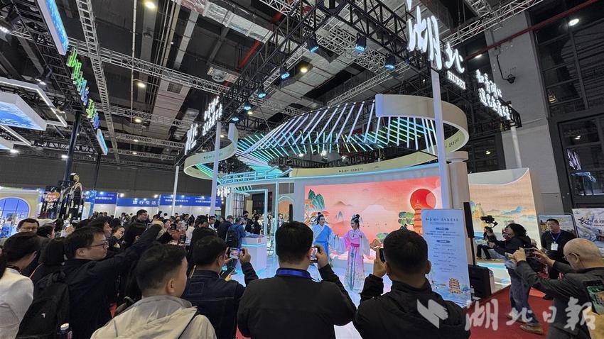 此次旅交会规模空前。湖北组织了武汉、宜昌、襄阳、十堰、荆州、神农架等15个市州的71家文旅企业参展。湖北参展团以“知音湖北 遇见无处不在”为主题,突出荆楚特色,秉承科技赋能、互动体验和绿色环保的国际化设计理念,将湖北亿万级产业“光芯屏端网”的科技元素与湖北文旅资源充分结合,专门设置了主题展馆,并在馆内分设国际荆楚、荆楚大观、荆楚有礼、荆楚灵韵四大板块展区。