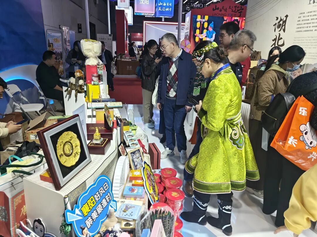 其中湖北展区以“知音湖北,遇见无处不在”为主题。襄阳文化和旅游局组团推出的牛肉面、诸葛亮羽毛扇、非遗香包等吸引了中外游客和各地参展商的目光;展台前摆放的非遗文创、小摆件让人爱不释手,特别是宣传单、旅游地图、口袋书被观众收藏一空。