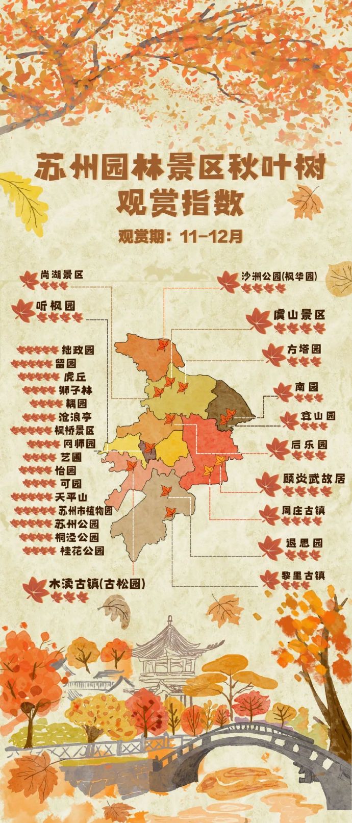 苏州园林,四季都有着独特的韵味,而深秋,当属色叶树的天下。它们用五彩斑斓的色彩,为苏州园林绘制出一幅幅绝美的画卷。