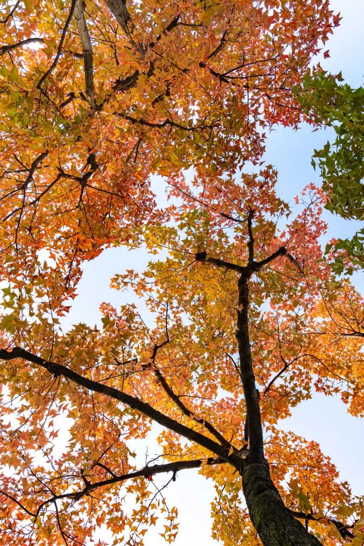 秋色叶树种在秋天或经霜后的叶片变得醒目、亮丽,明显不同于其他观赏期的颜色,叶片转色期均匀整齐、且持续时间长,整个树冠显得鲜艳而优美。树叶呈现什么颜色与叶绿体中的胡萝卜素、花青素、叶绿素的相对含量变化相关,当类胡萝卜素相对含量增加时叶片变黄,当花青素相对含量增加时,叶片变红。