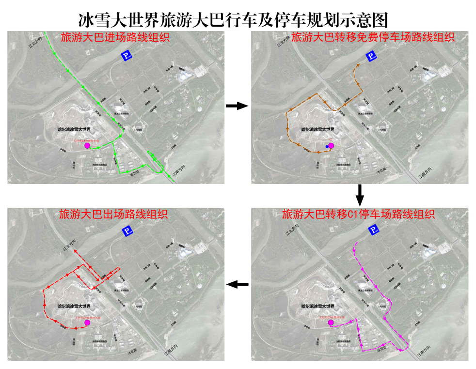 冰雪大世界旅游大巴车及停车规划示意图(哈尔滨市文化广电和旅游局供图)