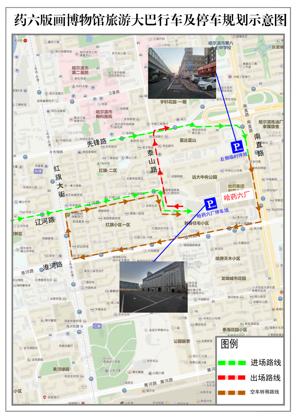 药六版画博物馆旅游大巴车及停车规划示意图(哈尔滨市文化广电和旅游局供图)