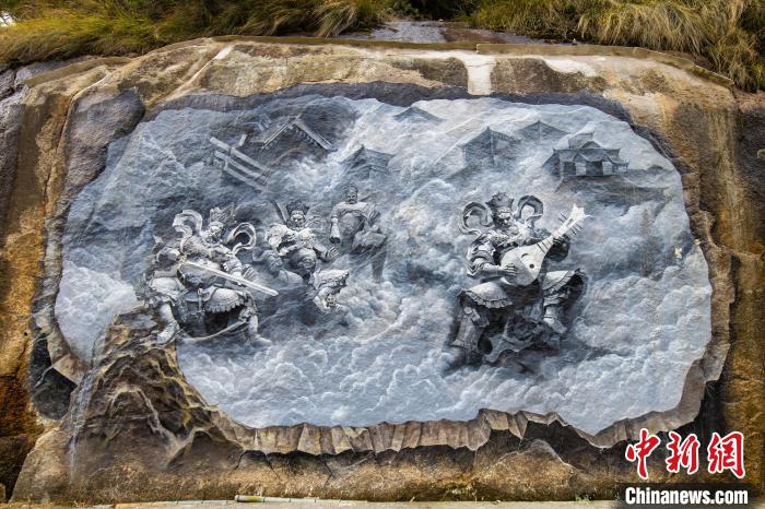 “我们对天然岩壁进行防水、磨平等处理后,根据岩壁大小、形状,因地制宜画上画面。”徐海荣介绍说,岩壁有很多空隙,容易“吃”颜料,还存在渗水等问题,画起来并不容易。这组壁画,团队成员耗时1个多月才得以完成。