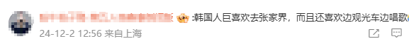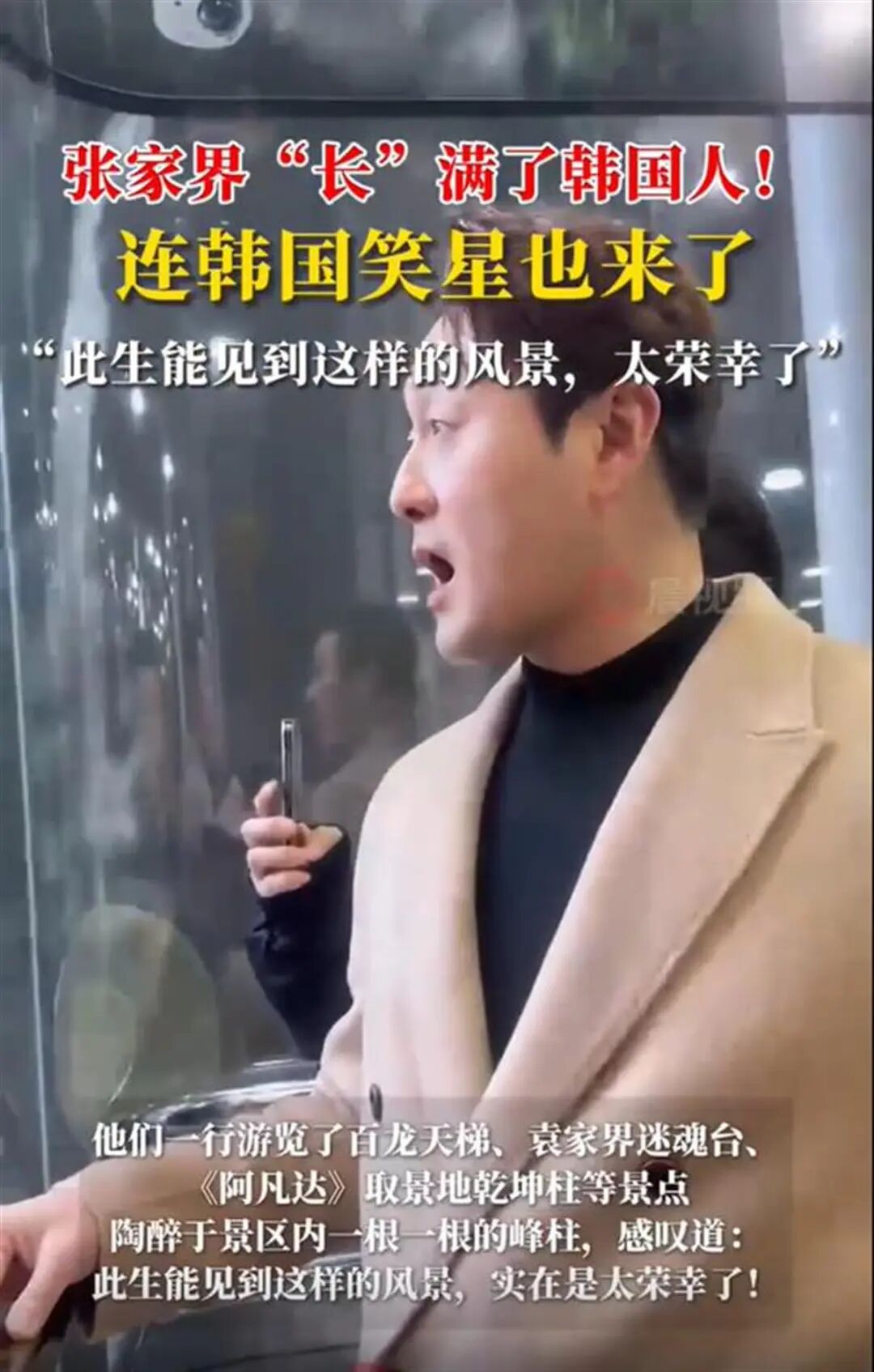 据报道,今年前8个月,张家界全市共接待入境游客28.97万人次,其中韩国游客贡献了三分之一。自11月9日至12月4日,张家界市接待的韩国游客人数同比增长108%,达到近2.7万人。中国网友调侃道:“张家界长满了韩国人。”