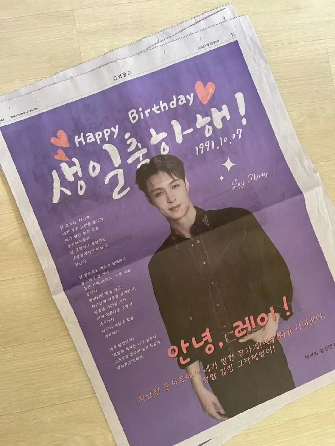 △10月7日,韩国粉丝为张艺兴刊登整版庆生海报。