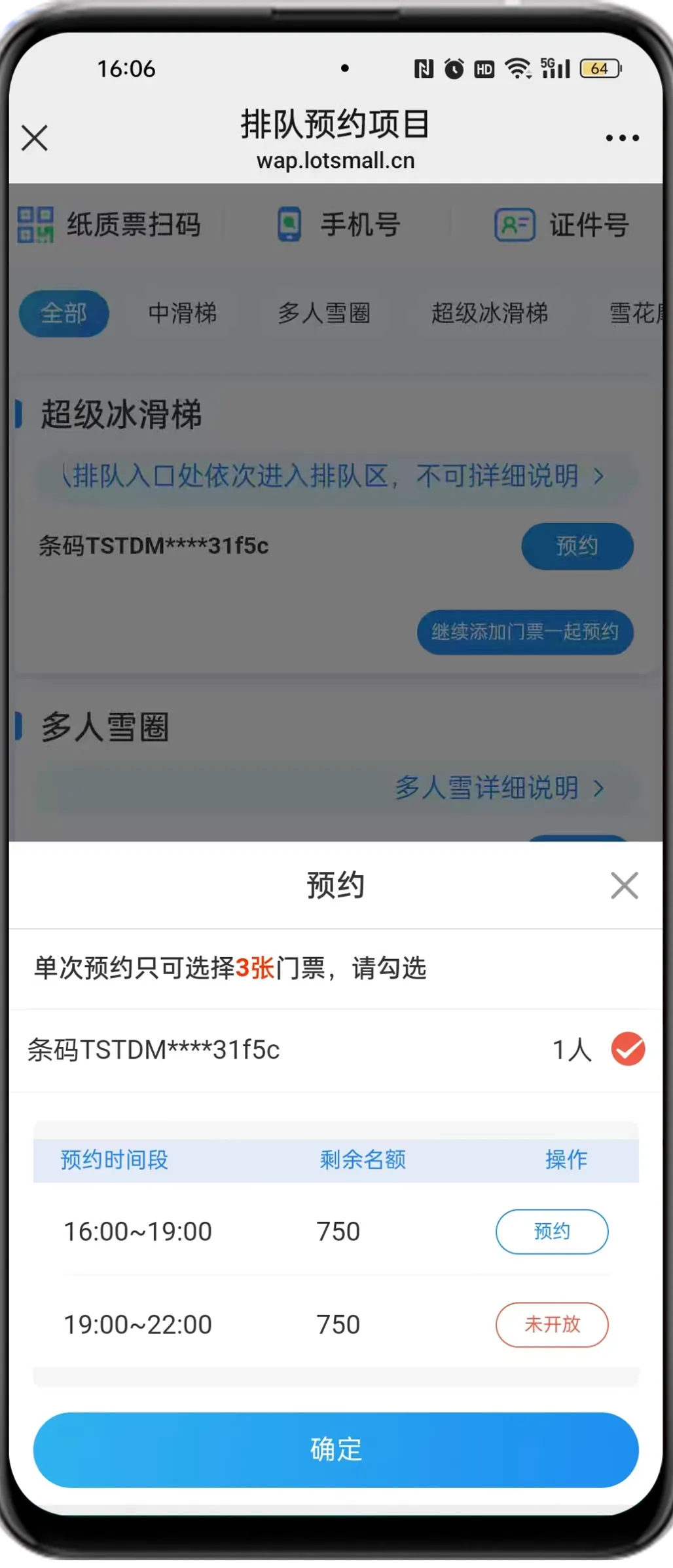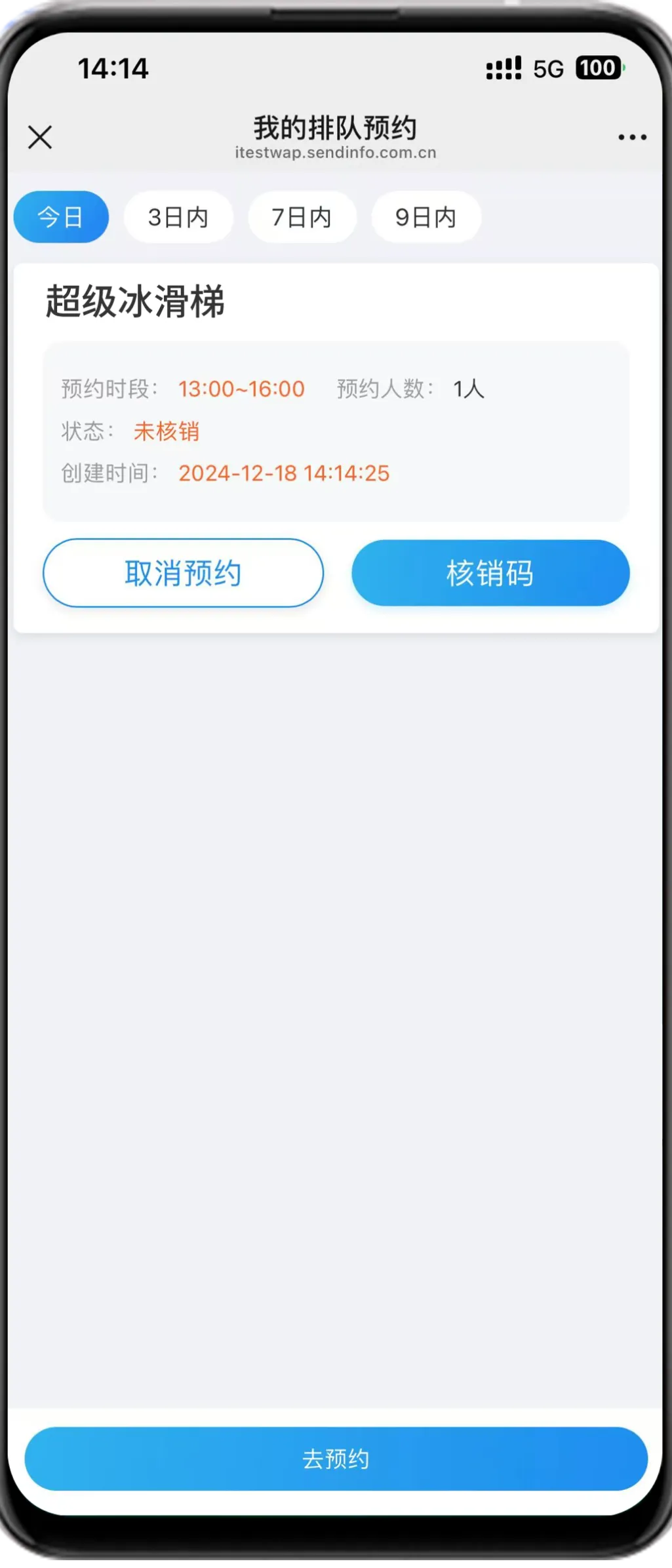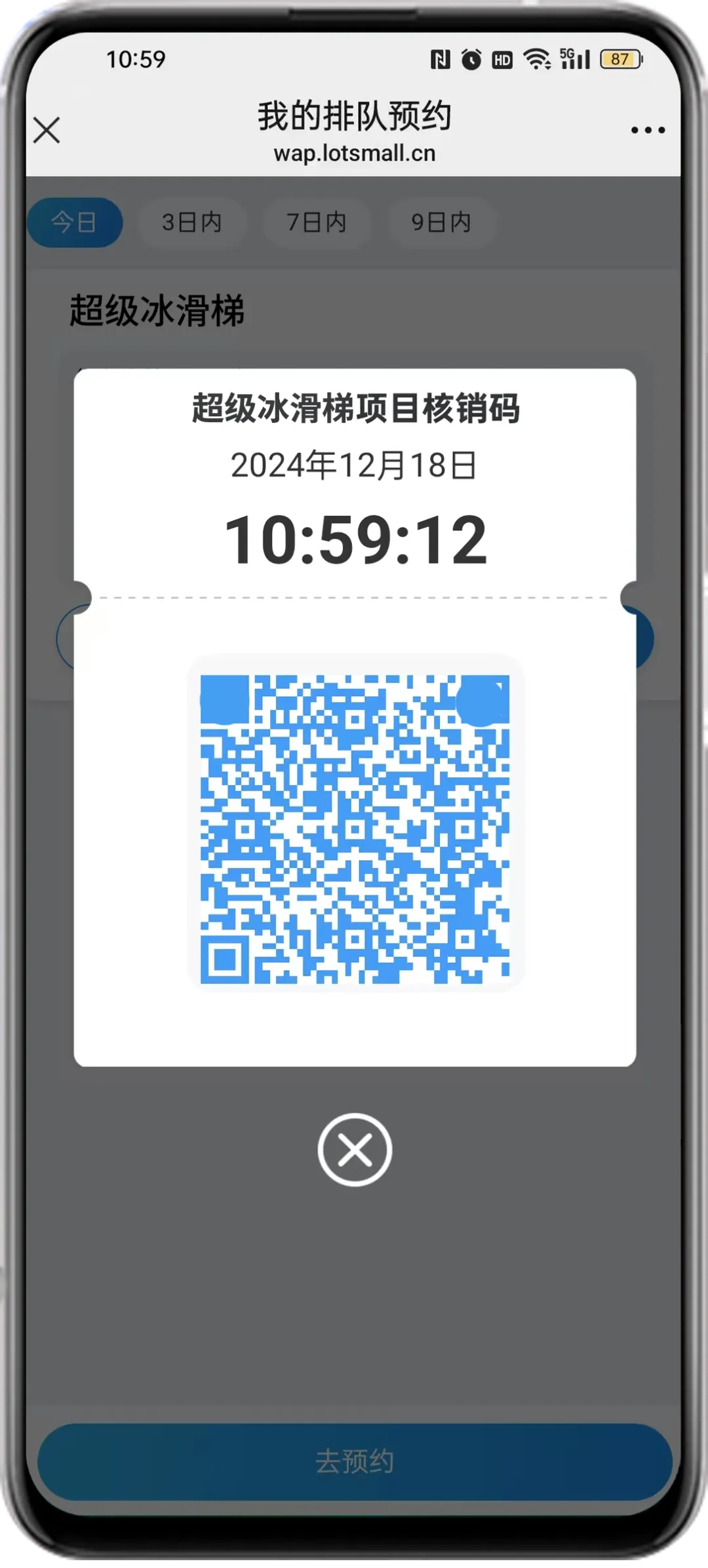 2.预约成功后,在对应时段凭核销码至超级冰滑梯项目核销。