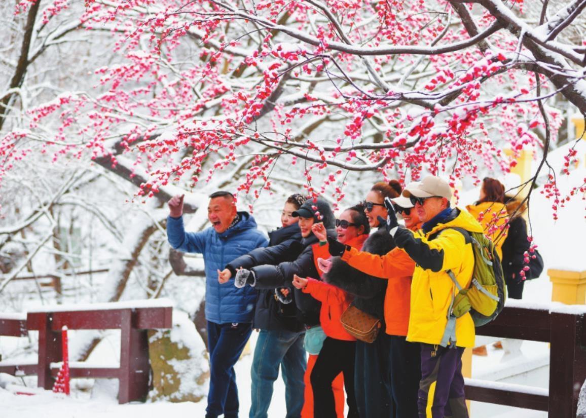 二是举办“踏雪寻梅”冰雪影像大赛。我们采取大观园古建实景与人工造景相结合,凸显梅花、冰雪主题景观,引导广大游客拍照、录制短视频,影像作品发送景区邮箱,官方抖音号、公众号择优对外发布。