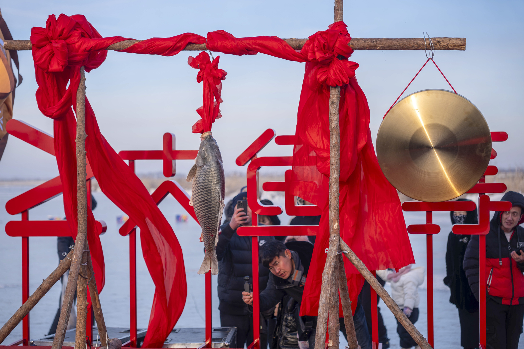 当天,长春(农安)首届太平池冬捕活动正式启动,开展了玉龙开湖印、头鱼拍卖等系列冬捕活动,让游客领略到了辽金渔猎民俗的独特魅力。