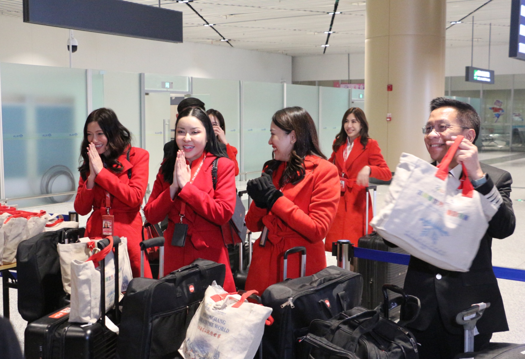 带着兴奋、欣喜表情的300多名首航游客,聚集在太平机场国际达到厅,拍摄了首张团队“全家福”,与前来迎接的黑龙江省有关单位领导与工作人员亲切合影。泰国国家旅游局北京办事处负责同志也专程从北京赶来,在24日11时45分,为首航曼谷的黑龙江游客送行仪式。