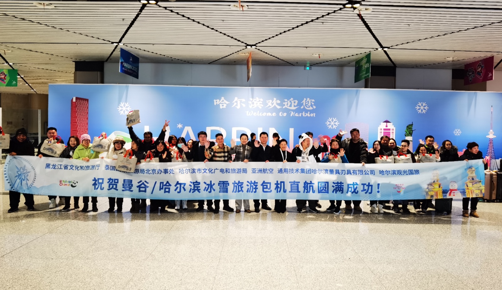 “哈尔滨刚刚纳入国家240小时过境免签政策城市范围,我们就迎来了来自泰国的旅游包机。哈尔滨的冰雪景观是世界级的,我们热烈欢迎来自世界各地的游客,我们将全力做好国际游客的各项服务保障,让他们在这里玩的开心、舒心、顺心、安心。”哈尔滨文旅局副局长朱占春说。