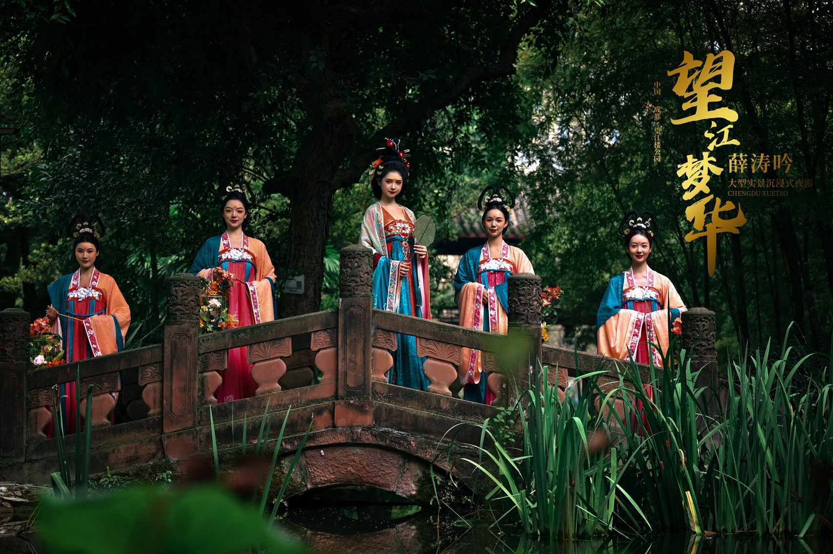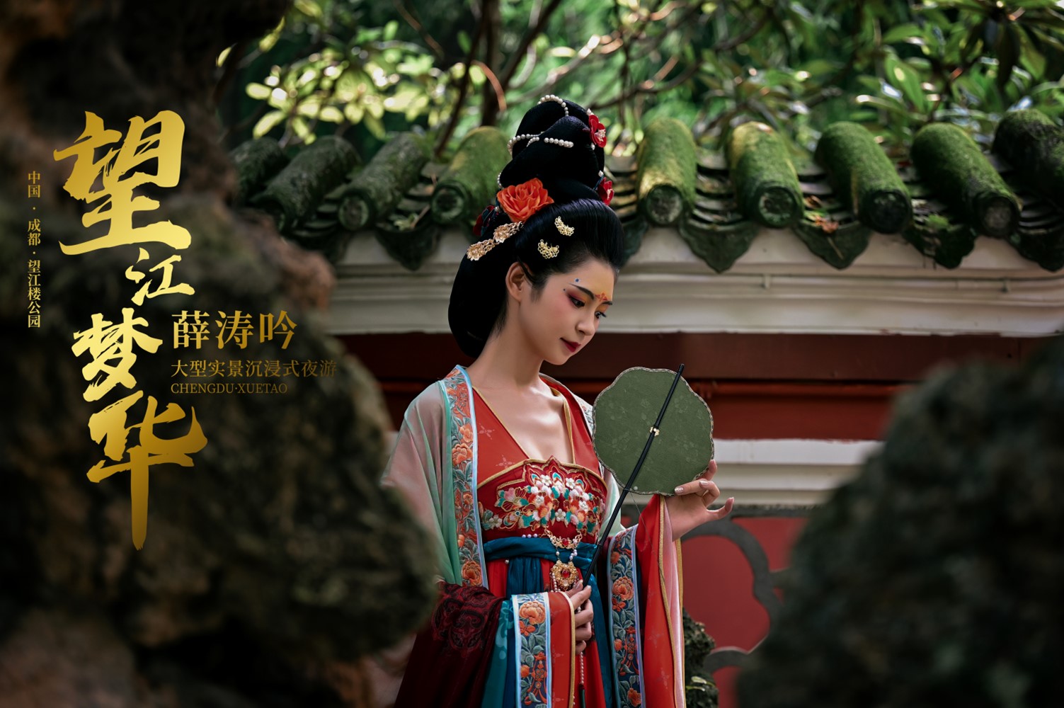 成都最出名的唐朝人除了诗圣杜甫,还有“平分工部草堂”的女诗人薛涛。“蜀女多才,薛涛秀冠。”薛涛是写诗和存诗都最多的唐代女诗人,她的传奇故事千古流传,令人遐想。2024年12月31日,“望江梦华·薛涛吟”实景沉浸式夜游元旦特别活动将在成都市望江楼公园启幕,再现大唐“女校书”的传奇人生。