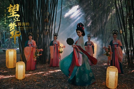 据记者了解,“望江梦华·薛涛吟”采用时空交错式的叙事结构,故事以时为序,以诗为引,将“诗”贯穿于演艺中,并以实景演艺秀为表演形式,创新打造八大章节,以望江楼公园为核心展示场景,串联翠竹长廊、薛涛纪念馆、崇丽阁、薛涛井、泉香榭、望月台等多个节点。一步一景,皆是大唐的风华,一景一梦,皆是“女校书”魅影才情。漫步翠竹长廊,诗景如画,南国孔雀入梦,侍女掌灯而舞,锦江老人邀你走入大唐“女校书”薛涛的传奇人生,开启鲜活生动的人文艺术盛宴。