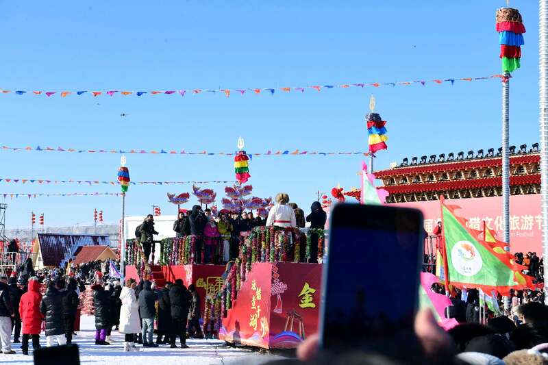 中国青年报客户端长春12月28日电(中青报·中青网记者 王培莲)今天,吉林松原查干湖第23届冰雪渔猎文化旅游节开幕。开幕式现场,点圣火、祭湖神、醒冬网、“鱼把头”穿冰下网,捕捞头鱼……顷刻间冰湖腾鱼、万人狂欢。同时,现场还举办了“头鱼竞拍”、主题雪雕展、非遗文化展等活动。