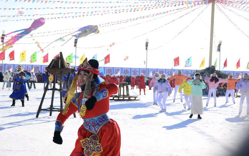 今天,查干湖龙鱼部落度假区作为全国首个沉浸式探秘冬捕文化主题园区正式亮相。除此之外,本届旅游节还推出了冰上音乐厅、“小网捕鱼”互动体验、冰上赛车漂移、冰雪那达慕等十大系列特色项目。活动同时将传统元素和现代科技元素结合,不仅有马拉爬犁看冬捕,游客们还可以选择乘坐轻型运动飞机与滑翔伞等现代航空器,在空中俯瞰渔猎盛况,进一步丰富了冰雪体验的形式与内容。近年来,松原市充分利用冰雪资源优势,打造“冰雪渔猎”名城、建设西部冰雪旅游中心城市,做足“冰雪+”文章;以“冰雪+体育”“冰雪+娱乐”“冰雪+文化”模式积极探索新的发展道路,将“白雪换白银”,助力冰雪经济蓬勃发展。