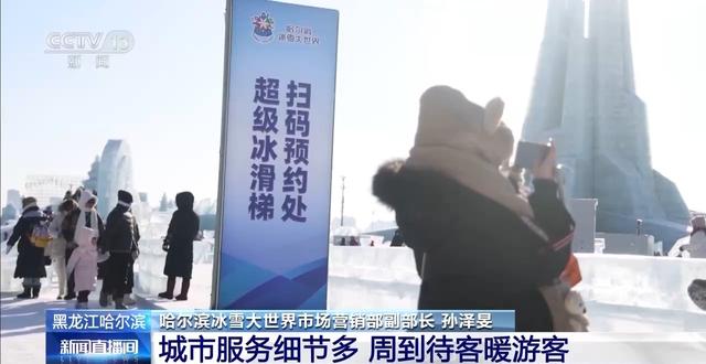 哈尔滨冰雪大世界市场营销部副部长 孙泽旻:今年我们也把单纯的排队改成了预约的形式,您提前预约好后,可以在规定的时间去乘坐超级冰滑梯,可以有效节约游客排队的时间,排队区也修建了暖廊。