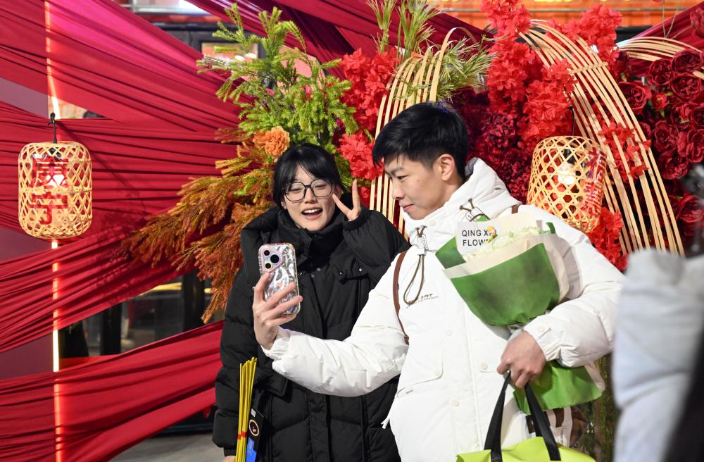 2024年12月31日晚,人们在呼和浩特市回民区转角巷参与跨年活动。新华社记者 贝赫 摄