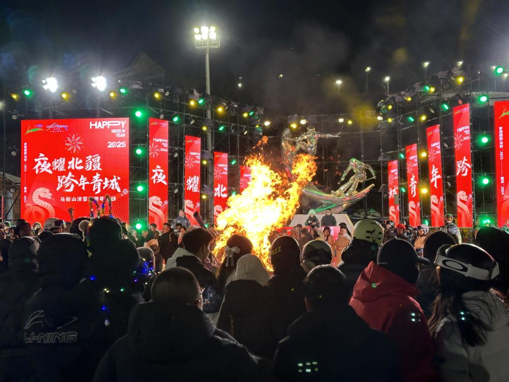 2024年12月31日,人们在内蒙古呼和浩特市马鬃山滑雪场参加跨年活动。新华社记者 王雪冰 摄