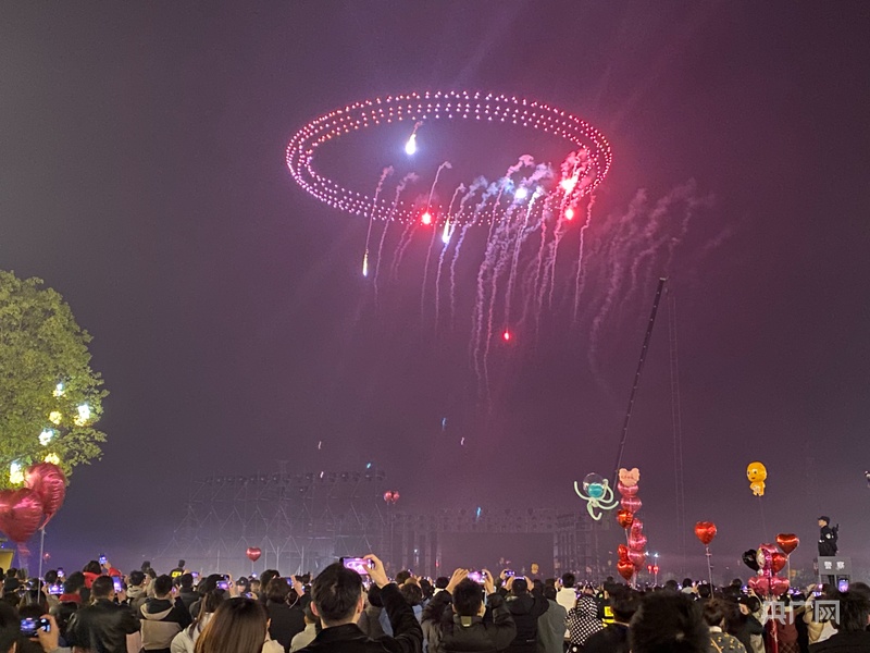 “天空之门”无人机表演惊艳亮相(央广网记者胡斐摄)