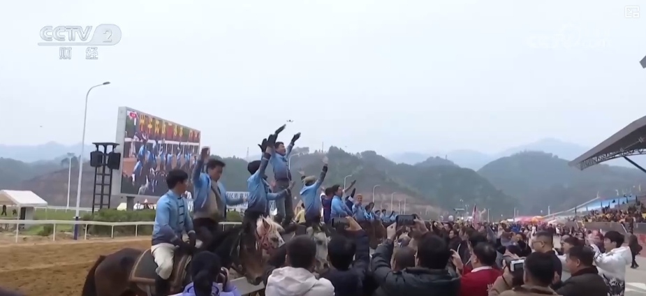 在黔南州三都县的西部赛马城,赛马、马术特技表演和民族文化展演等轮番上演。赛马场上,马儿如离弦之箭般冲出起点,骑手们紧握缰绳奋勇争先,赛道旁观众的欢呼声、呐喊声交织在一起,大家纷纷拿出手机记录这精彩时刻。
