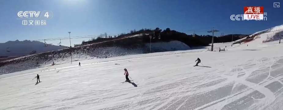 中午12时,雪场已经有不少游客。为了满足游客需求,雪场也是设置了不同类型的雪道。2025年,雪场对现有的16条雪道进行了提升改造。拓宽了高级雪道,调整雪道坡度,为游客带来更好的滑雪体验。