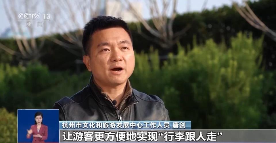 杭州市文化和旅游发展中心工作人员 唐剑:在试点运行之初,我们整合了各方资源,从最初的单纯的寄存1.0版本,升级到了寄存加寄送的2.0版本,现在也在不断地进行一个迭代提升。我们也充分考虑到了参与主体遇到的困难,为各方提供最大的协助,比如协助企业协调场地,给他们一些政策上的扶持,也帮助参与运营的企业制定应急处理措施。比如说在遇到特殊情况的时候,游客没有办法拿到他的行李,或者车次晚点之类的特殊原因的时候,企业可以通过快递的方式帮助游客把行李寄送到他的家里面。