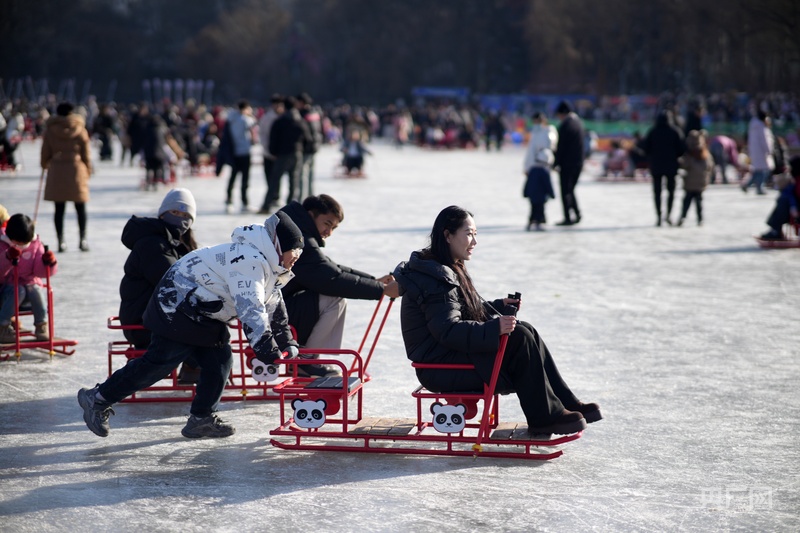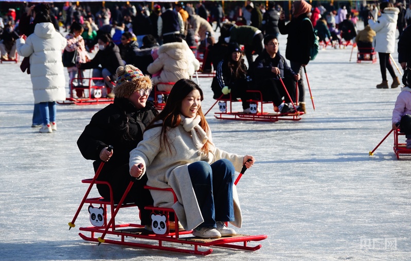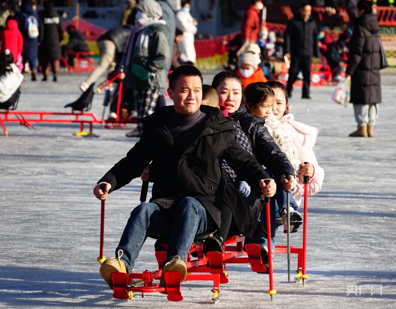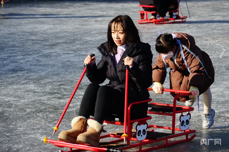 众多的市民来到户外参与冰上运动(央广网记者张海东摄)
