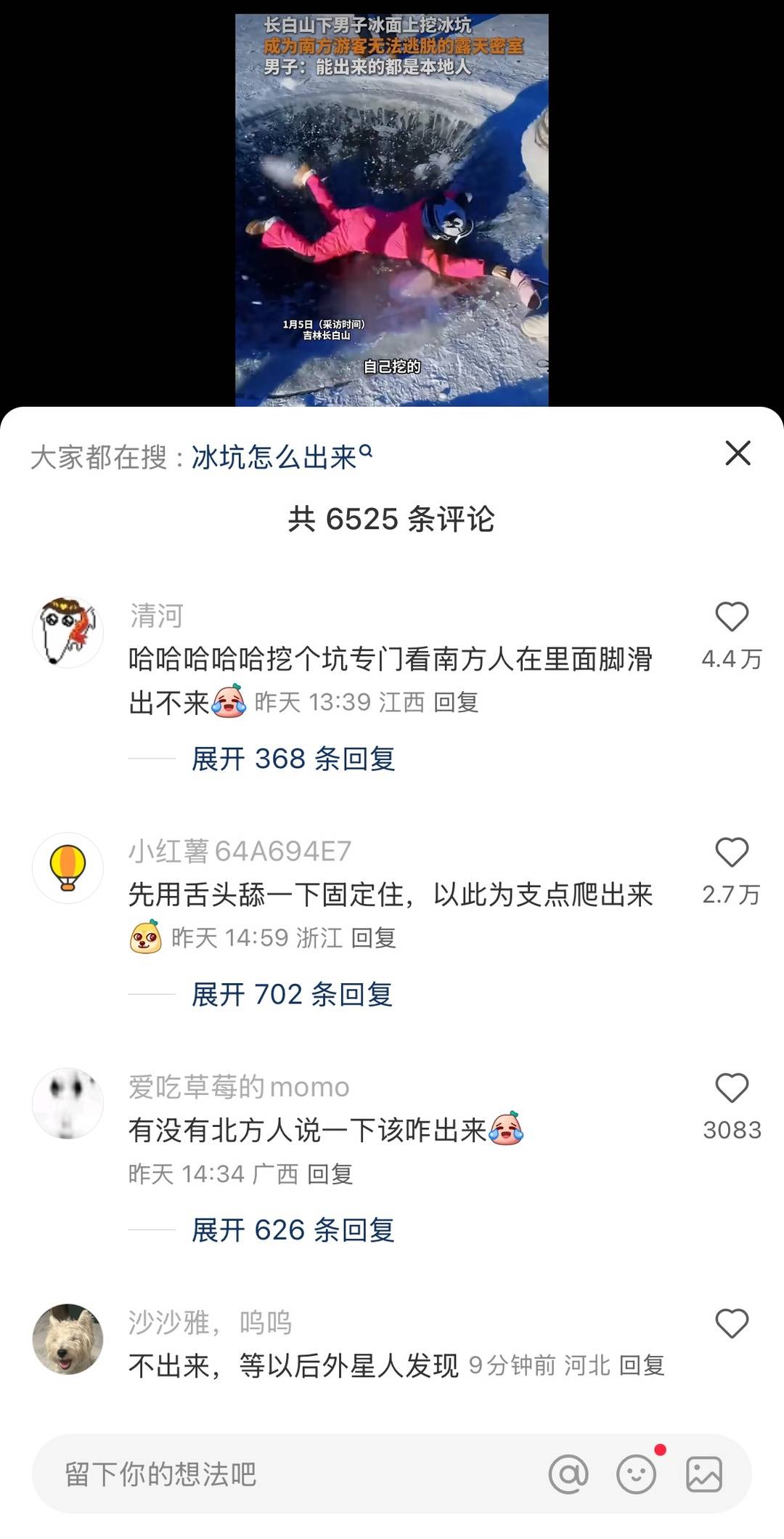 你参加过冰坑挑战吗?近日,一则“吉林长白山下一景区在冰面上挖冰坑,成为南方游客无法逃脱的露天密室”的短视频在网络走红。