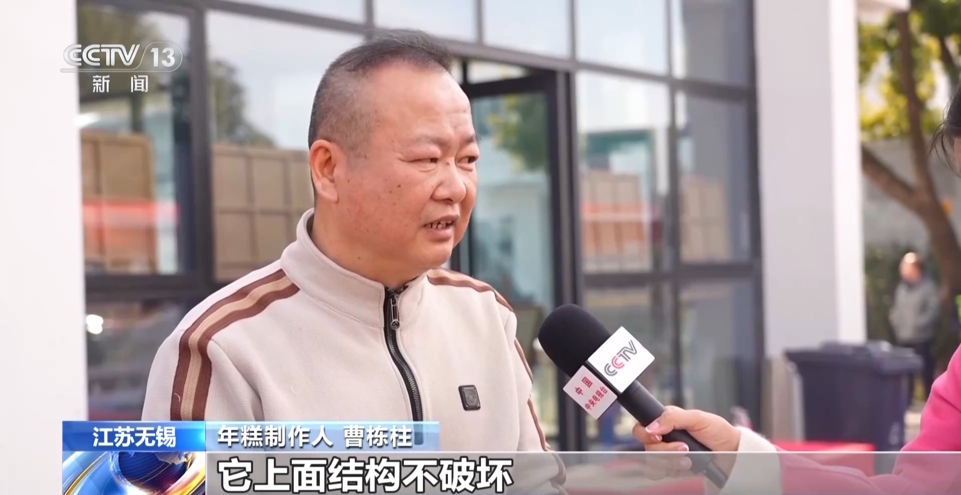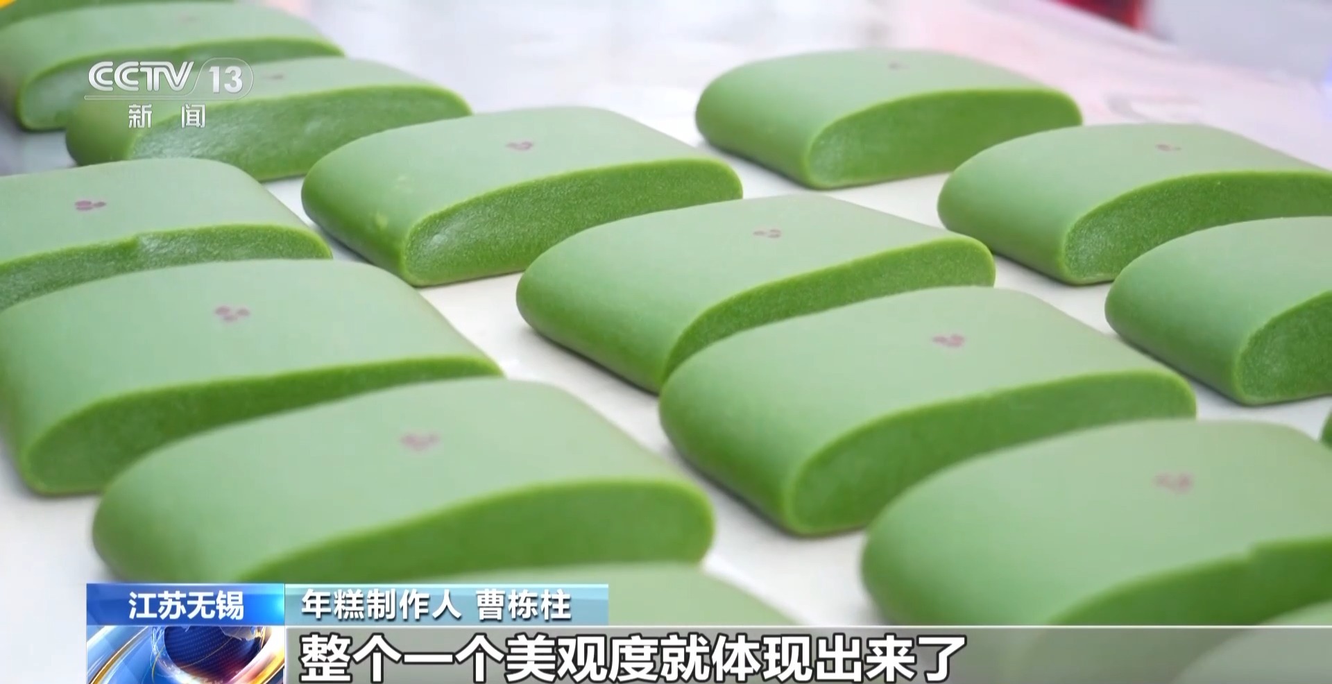 年糕制作人曹栋柱:年糕的黏性比较强,它上面结构不破坏,整个一个美观度就体现出来了。
