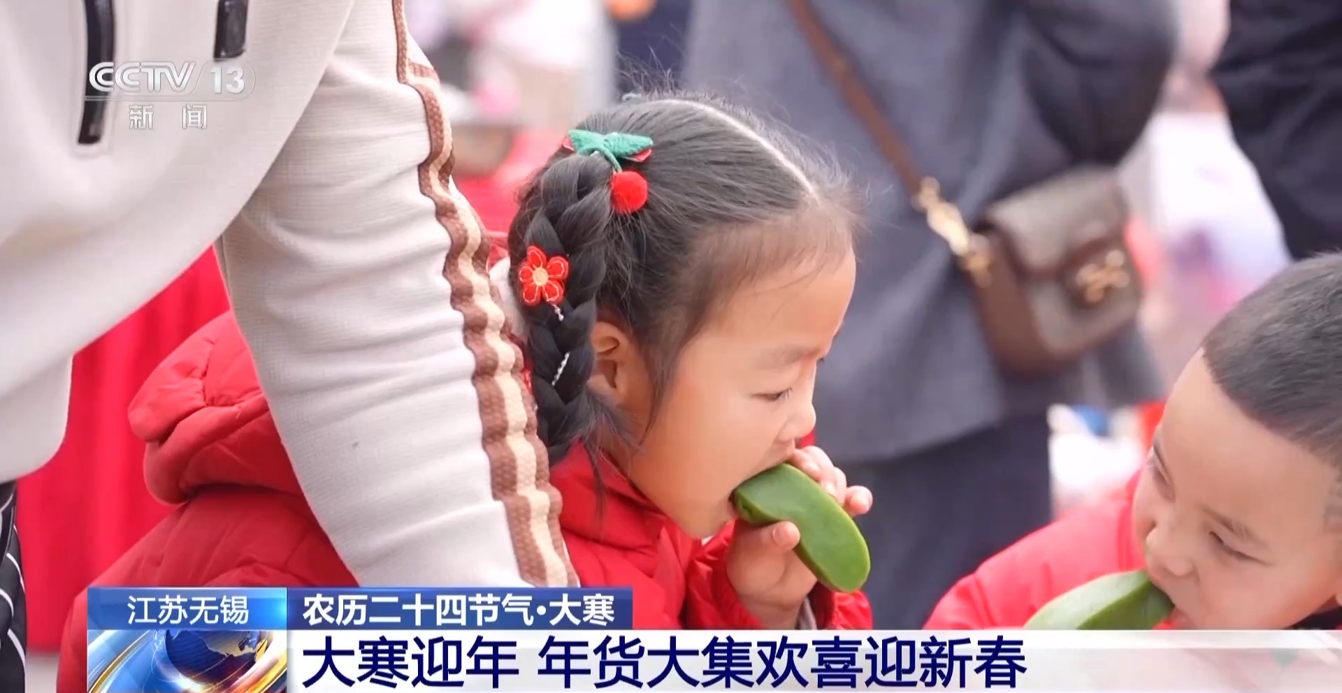 大寒节气,古时候江南一带有吃糯米制作的食物的习俗,称之为“食糯”。集市上,手艺人正在现场制作年糕,蒸开锅的糯米粉,氤氲的热气散发开来,在双手翻飞中,加了麦草汁的糯米粉很快变成一条条年糕,再用一条细细的棉线,轻轻一拉,快准狠,年糕就切好了。