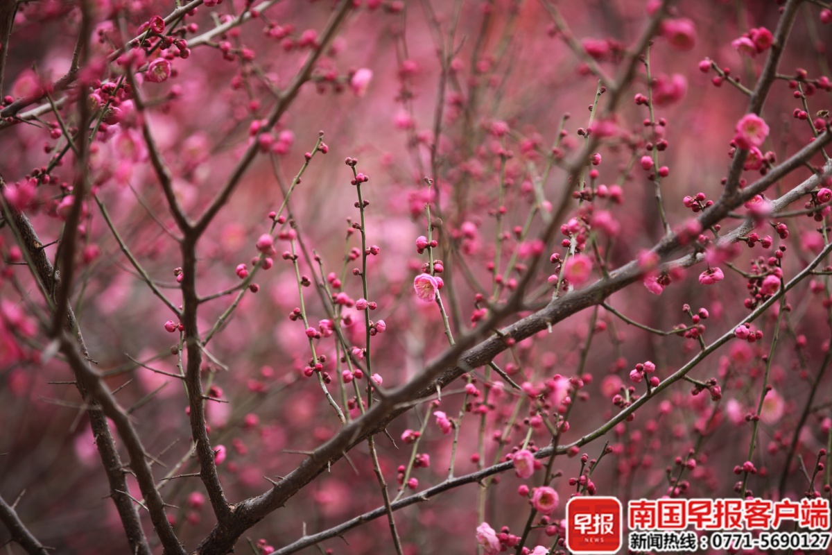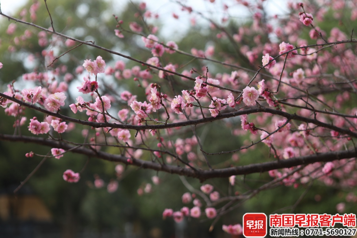 临近春节,桂林市内各大公园、小区、道路旁绽放的梅花犹如迎春使者,给桂林冬日增添喜庆的新年氛围,吸引了众多观赏者前来拍照,成为春节独特的风景线。