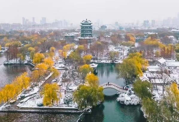 雪后的大明湖,在皑皑白雪装点下分外美丽。微风拂过,湖畔轻舞的雪花与古老的建筑相映成趣,多了份冬日的宁静和美好。漫步湖边,雪的静谧与脚下的“咯吱”声交织在一起,恰似冬日的低语。暖暖阳光下,水面微波粼粼,泛起层层涟漪,湖面残荷的枯枝,湖畔渐黄的垂柳,在白雪的映衬下显得格外动人,似在静静地等待,等待着新绿的绽放。不觉地想起老舍先生的那句:“明天也许就是春天了吧?”